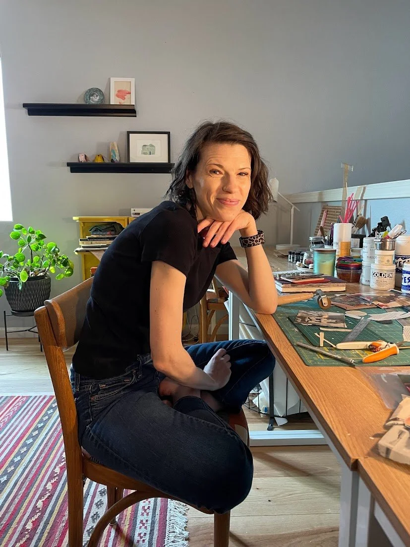 Torea Frey is a collage and mixed media artist based in Clackamas, Oregon. She has been working with found papers, glue, and paint since the early 2000s, exploring the transformative potential of mundane materials. Her work, which often grapples with issues of language, gender, identity, and memory, has been shown in the US and abroad, at venues such as Slip Gallery (Seattle, Wash.), the Reece Museum (Johnson City, Tenn.), and the House of Music (Pardubice, Czech Republic). It has also been featured in publications including Cut Me Up magazine, Wilder Collage, About Place Journal, and Borderline Press. Recently, Frey spent time in residence at the Virginia Center for Creative Arts and curated a collage-and-disability-arts show in Portland, Oregon. She is on the board of the Northwest Collage Society and is a member of the National Collage Society.